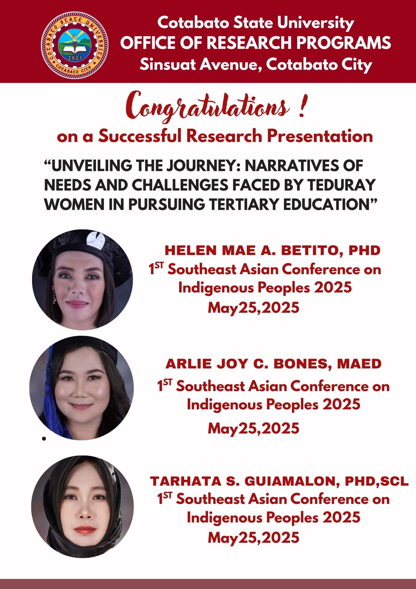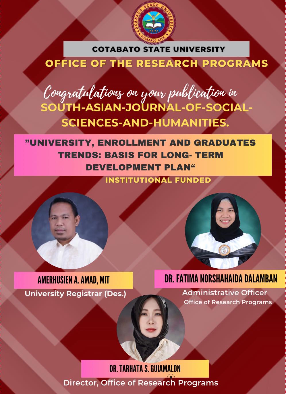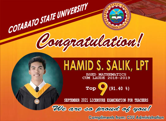 Resembling man’s civilization which had begun from simple to complex, Cotabato City State Polytechnic College started from ‘thinness to thickness.’ It was initially existed as a Cotabato High School (CHS) in 1924 subsisting for almost 43 years; then in 1977, it was converted into CotabatoCity National High School (CCNHS) maintaining its name for almost six years. Eventually in 1983, it was developed into Cotabato City State Polytechnic College (CCSPC) keeping its name for more than three decades but due to its vision for global competitiveness, it has now reached the peak of its vision towards the achievement of its official name as Cotabato State University (CSU) and it has been optimistically perceived to continuously shine until the end of time.