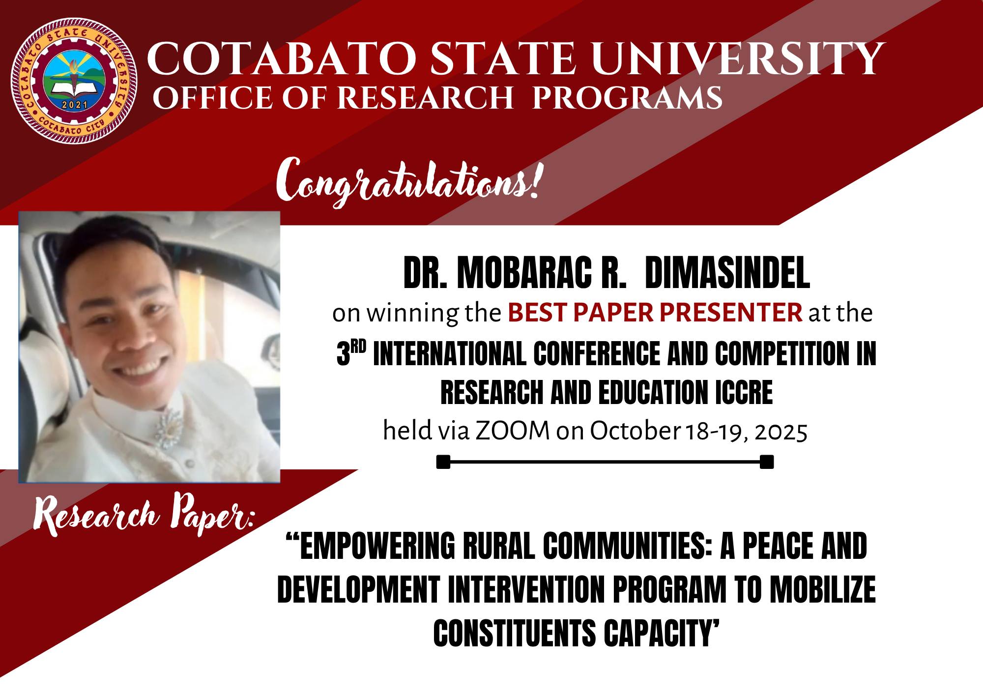 As stated in AACCUP accreditation manual, the level III Re-accredited status is awarded to programs with a reasonably high standard of instruction; with highly visible research tradition; with the existence of working consortia or linkages with other schools and/or agencies; and with extensive and functional library and other learning resource facilities. In addition, four (4) other graduate programs were also reviewed by AACCUP accreditors alongside MAEd during the same period. The Ph.D. in Educational Management (4.14); Ph.D. in Public Administration (4.20); MA in Peace and Development (4.02); and MS in Agricultural Extension (4.12) passed Phase 1 of two (2) phases of evaluation in the 3rd survey visit and has undergone phase 2 with a descriptive rating of VERY SATISFACTORY and were granted Level II Re-accredited status from October 1, 2022 to September 30, 2023. //Tarhata Piang Solaiman